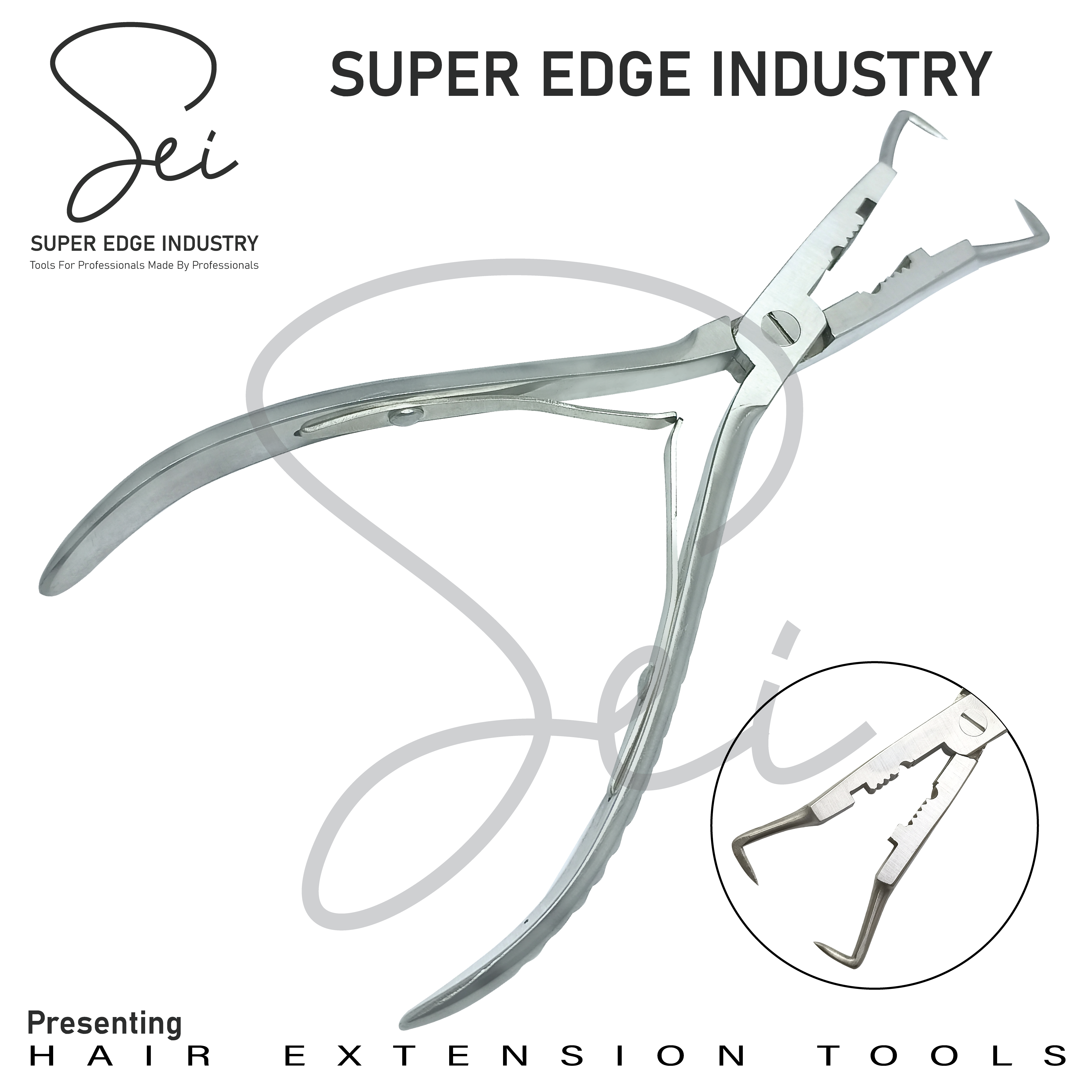 Presenting FLAT MOUTH OPENER AND CLOSER HAIR EXTENSION PLIER WITH LINEAR LINES FOR REMOVING MICRO RINGS, NANO BEADS, CRUSHING KERATINE GLUE BONDS, U-Tip or I-TIP EXTENSIONS AND FOR APPLYING ANDĀ OPENINGĀ ALSO.